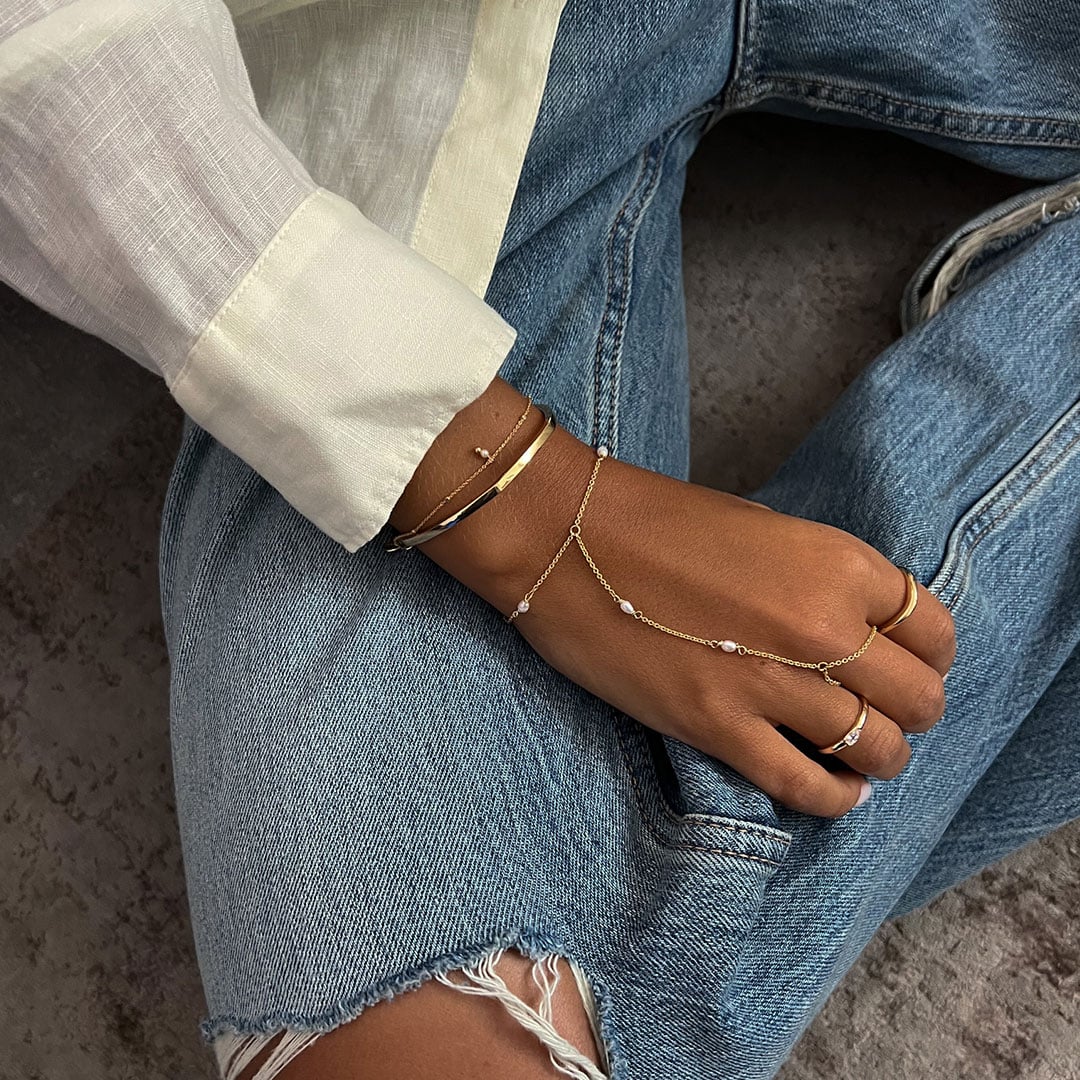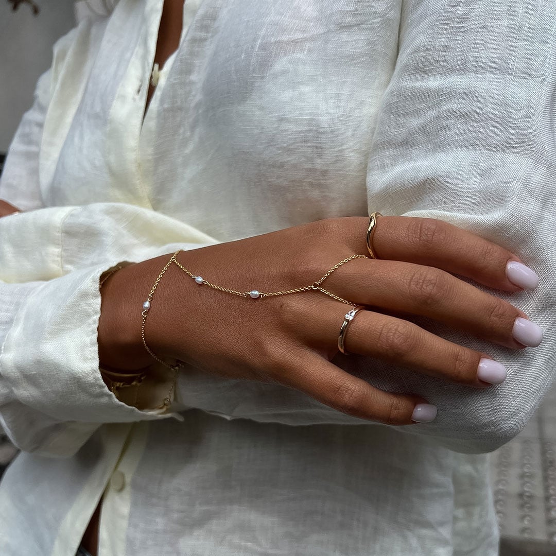 אורך הצמיד ליד 16 ס"מ, אורך השרשרת בין הצמיד לטבעת 8 ס"מ, מידת הטבעת 11