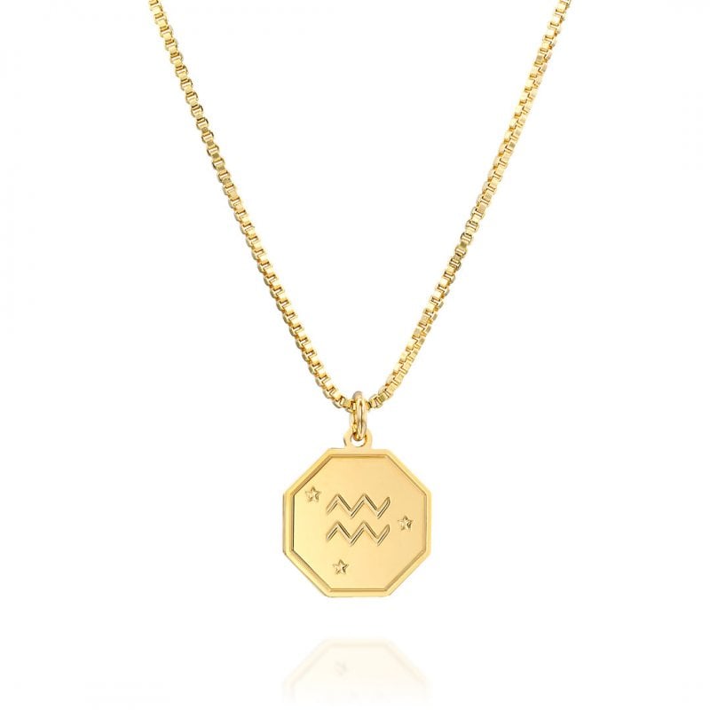 בצידו האחורי של התליון חרוט של AQUARIUS (בעברית: מזל דלי). אחת השרשראות הכי לוהטות הקיץ וניתן ואף מומלץ לשלב אותה יחד עם שרשראות נוספות.